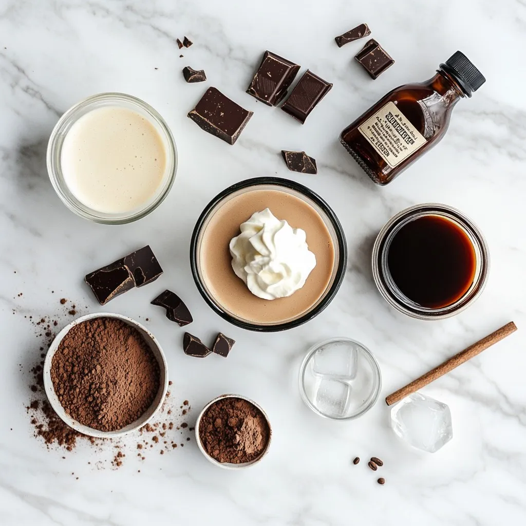 Don’t forget ice cubes! They chill your drink to perfection. For topping, whipped cream makes it feel special. Dark chocolate shavings add a touch of elegance and flavor.