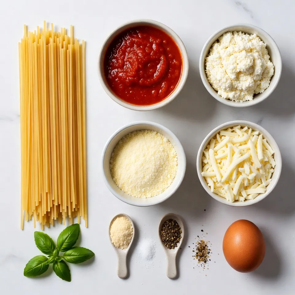 To make Cheesy Baked Spaghetti, you need to follow a few simple steps. First, gather all your ingredients. You will need spaghetti, marinara sauce, ricotta cheese, mozzarella cheese, Parmesan cheese, a large egg, garlic powder, Italian seasoning, salt, and pepper. This dish is easy to prepare and perfect for the whole family.