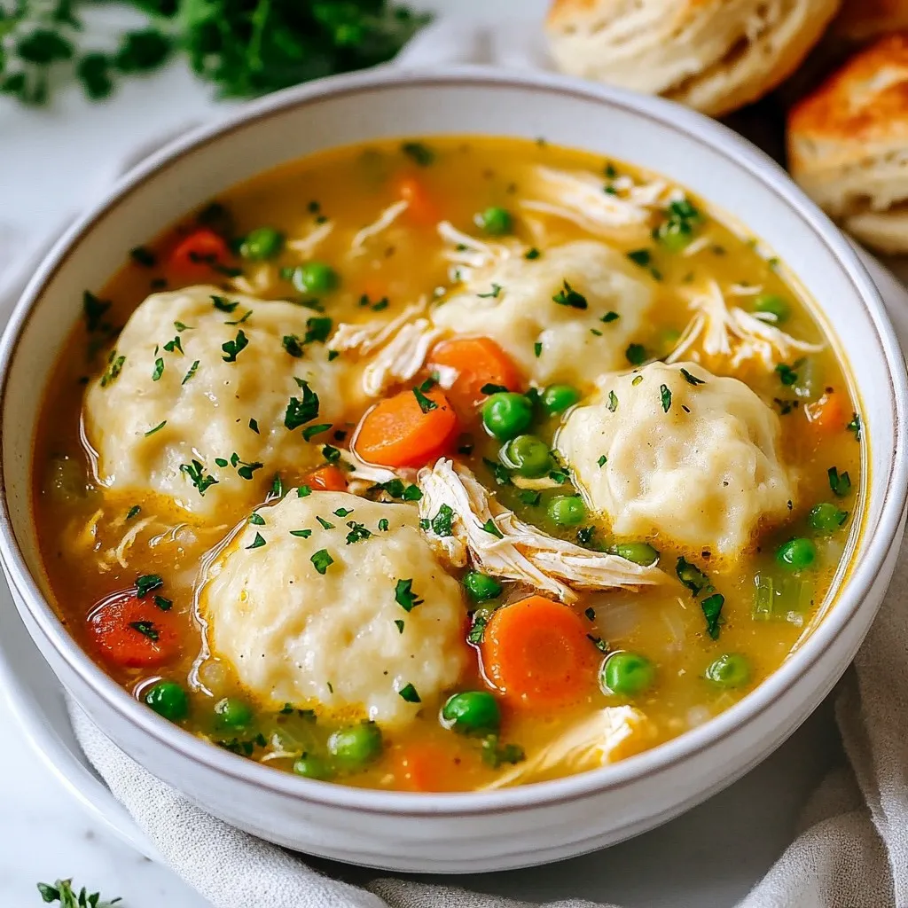 Cozy Chicken Dumpling Soup with Fluffy Biscuits