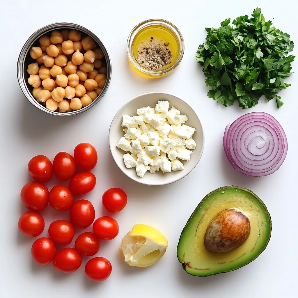 To make the Chickpea Feta Avocado Salad, gather these simple ingredients: