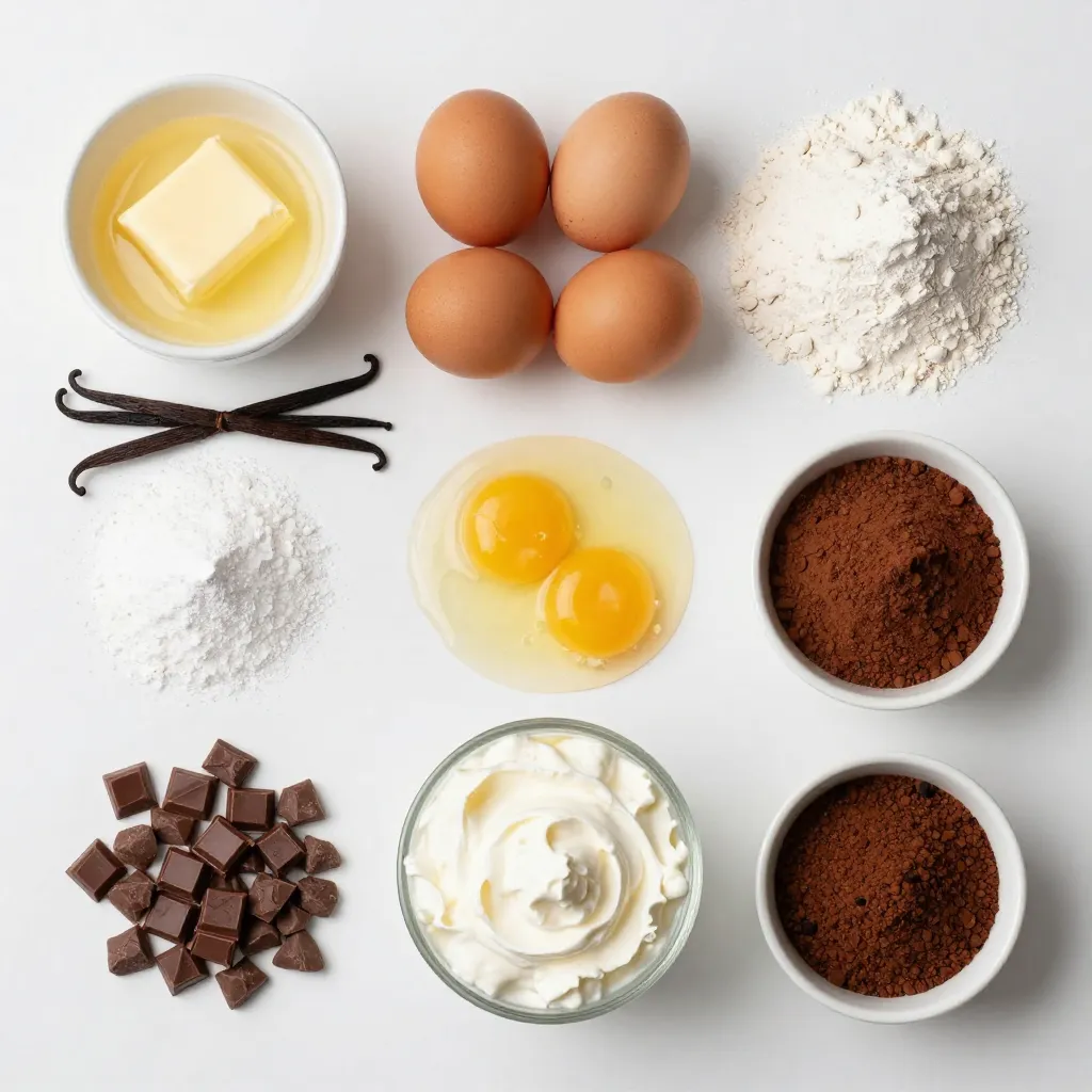 Gather these ingredients before you start. Fresh, quality ingredients make a big difference. Unsalted butter gives a rich base. Granulated and brown sugars add sweetness and moisture. Large eggs create structure and richness. Pure vanilla extract boosts flavor. All-purpose flour and cocoa powder form the base. Salt and baking powder help with texture. Semi-sweet chocolate chips add more chocolatey goodness. Heavy cream is key for the mousse. Powdered sugar sweetens the mousse, while instant coffee granules can enhance the chocolate flavor.