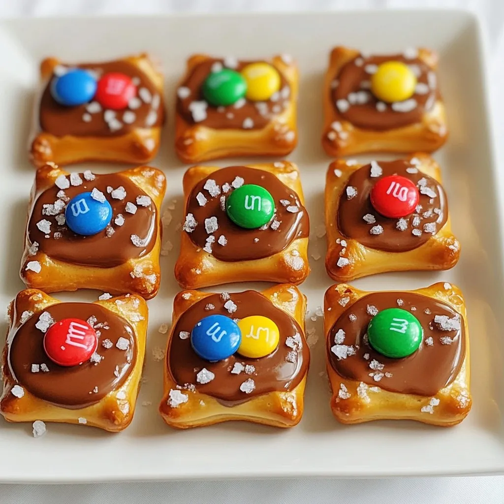 Each ingredient plays a key role in the flavor and look of these treats. The square pretzels give a nice crunch. The Hershey’s Hugs add creamy chocolate goodness. The colorful M&M’s bring festive cheer. Finally, a sprinkle of sea salt gives that perfect sweet-and-salty mix.