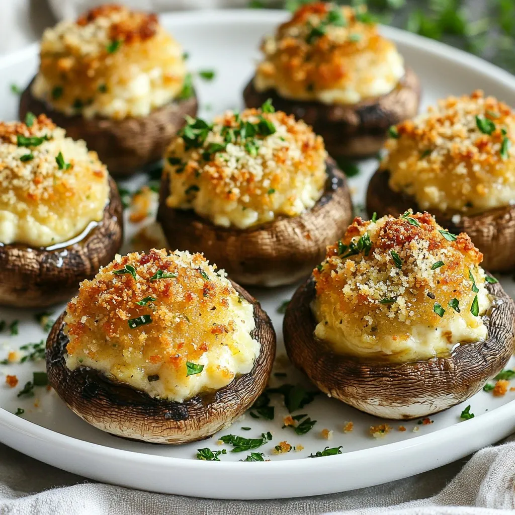 To impress your guests, use a nice platter. Arrange the stuffed mushrooms in a circle or line. Sprinkle fresh parsley on top for color. You can place them on greens for a festive touch. This makes them look even more inviting and delicious!