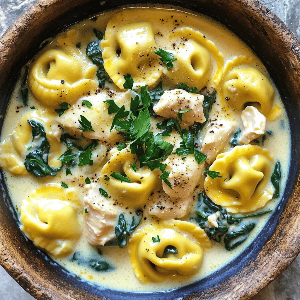 To make creamy garlic Parmesan chicken tortellini, you start by cooking the tortellini in salted water. Drain it when tender. In a skillet, heat olive oil and sauté minced garlic until fragrant. Add cubed cooked chicken and Italian seasoning, cooking until warm. Pour in heavy cream and let it simmer. Whisk in Parmesan cheese until smooth. Finally, fold in the tortellini and spinach, mixing until the spinach wilts. Season with salt and pepper before serving.
