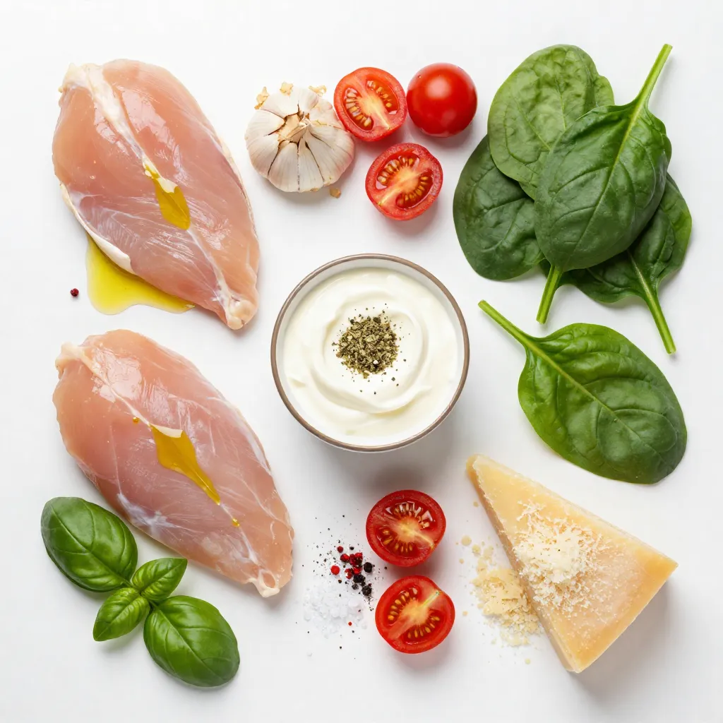 - 4 boneless, skinless chicken breasts - 2 tablespoons olive oil - 4 cloves garlic, finely minced - 1 cup cherry tomatoes, halved - 1 cup fresh baby spinach - 1 cup heavy cream - 1 teaspoon Italian seasoning - ½ teaspoon crushed red pepper flakes (optional) - Salt and freshly ground black pepper to taste - Fresh basil leaves for garnish - Grated Parmesan cheese for serving The main ingredients in creamy garlic Tuscan chicken make it rich and tasty. The chicken breasts are the star. They soak up all the good flavors. The olive oil helps to sear the chicken. It gives it a nice golden crust. Garlic adds a punch of flavor. It brings warmth to every bite. Cherry tomatoes burst with sweetness. They balance the dish perfectly. Fresh spinach adds color and nutrients. The heavy cream creates that dreamy texture. It makes the sauce smooth and rich. The seasonings turn this dish into a delight. Italian seasoning brings herbs like oregano and basil. It adds depth to the sauce. Crushed red pepper flakes give an optional kick. Salt and black pepper enhance all the flavors. Fresh basil leaves are a lovely garnish. They add aroma and freshness to each plate. Grated Parmesan cheese adds a salty finish. It makes the dish feel special. With these ingredients, you create a flavorful dinner. Each bite offers a mix of creamy, savory, and fresh notes. This meal is perfect for any night of the week. {{ingredient_image_2}} Seasoning the chicken breasts Start by seasoning the chicken breasts. Use salt and black pepper on both sides. This step boosts the chicken's flavor. Searing method and cook time Heat olive oil in a large skillet over medium-high heat. When the oil shimmers, add the chicken. Cook each side for 6-7 minutes. The chicken should turn golden brown. Check that it reaches an internal temperature of 165°F or 75°C. After cooking, remove the chicken and set it aside. Sautéing garlic In the same skillet, add the minced garlic. Sauté it for about 30 seconds. Stir constantly to avoid burning. The garlic should smell fragrant and turn golden. Adding tomatoes and spinach Next, add the halved cherry tomatoes. Cook them for 2-3 minutes, stirring often. They will soften and release juices. Then, fold in the fresh baby spinach. Cook until it wilts, about 1-2 minutes. Pouring in heavy cream Lower the heat to medium-low. Pour the heavy cream into the skillet. Add Italian seasoning and red pepper flakes if you want some heat. Stir well to blend everything. Finalizing the sauce and warming chicken Let the sauce simmer for 3-4 minutes. It should thicken slightly. Return the chicken to the skillet. Spoon the creamy sauce over the chicken to coat it well. Warm it through for an additional 2-3 minutes. To ensure your chicken is cooked through, always check the internal temperature. It should reach 165°F (75°C). To get there, season your chicken well. Use salt and pepper on both sides. Sear the chicken in hot olive oil. Cook for about 6-7 minutes per side. Look for a golden brown color. This gives great flavor and keeps it juicy. The key to a creamy sauce is using heavy cream. Once you add it, lower the heat. Let it simmer gently. Stir often to mix in all the flavors. The sauce will thicken nicely. If you want extra flavor, add Italian seasoning and crushed red pepper flakes. For serving, choose a rustic wooden board or a white plate. This makes the vibrant colors stand out. Drizzle the creamy sauce over the chicken for a nice touch. Garnish with fresh basil leaves and grated Parmesan cheese for added elegance. Pair your dish with garlic bread and a fresh green salad. These sides enhance the meal and complement the rich sauce. Enjoy this flavorful dinner delight! Pro Tips Use Fresh Ingredients: Fresh garlic, spinach, and ripe cherry tomatoes will elevate the dish's flavor profile significantly, making it more vibrant and delicious. Monitor Chicken Temperature: Use a meat thermometer to ensure your chicken reaches an internal temperature of 165°F (75°C) for safe consumption and optimal juiciness. Adjust Creaminess: For a lighter sauce, you can substitute half of the heavy cream with chicken broth or use a lower-fat cream alternative while still maintaining flavor. Garnish for Presentation: Adding fresh basil and a sprinkle of Parmesan not only enhances flavor but also adds a beautiful finishing touch to your dish. {{image_4}} Low-carb alternatives If you're watching your carbs, use cauliflower rice instead of regular rice. You can also swap out the heavy cream for cauliflower puree to keep it creamy but lower in carbs. Dairy-free options To make this dish dairy-free, replace heavy cream with coconut cream or cashew cream. Both will add richness without dairy. Ensure the chicken broth used is also dairy-free. Adding additional vegetables You can boost the dish by adding zucchini or bell peppers. Just sauté them with the garlic for a few minutes before adding the tomatoes. This adds color and nutrition. Spices to boost flavor For an extra kick, try adding smoked paprika or more crushed red pepper flakes. A pinch of lemon zest can also brighten the dish. Just sprinkle them in when you add the heavy cream. To keep your creamy garlic Tuscan chicken fresh, follow these tips: - Refrigeration: Store the chicken in an airtight container. This helps prevent any strong odors from other foods. It stays good in the fridge for up to 3 days. Always let the dish cool down before sealing it up. - Freezing: For longer storage, you can freeze this dish. Place it in a freezer-safe container, leaving some space at the top. It will keep well for up to 3 months. When ready to eat, thaw it in the fridge overnight before reheating. To enjoy your creamy garlic Tuscan chicken again, use these methods: - Stovetop: Heat a skillet over medium heat. Add a splash of water or cream to prevent sticking. Place the chicken in the pan and cover. This helps warm it evenly. - Microwave: Transfer the chicken to a microwave-safe dish. Cover it with a d