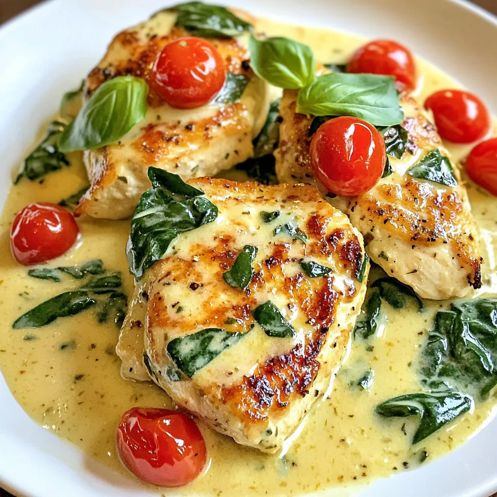 - Plate your delicious chicken, generously drizzling the creamy sauce over each piece, and finish with a scattering of fresh basil leaves for a pop of color and fresh flavor.