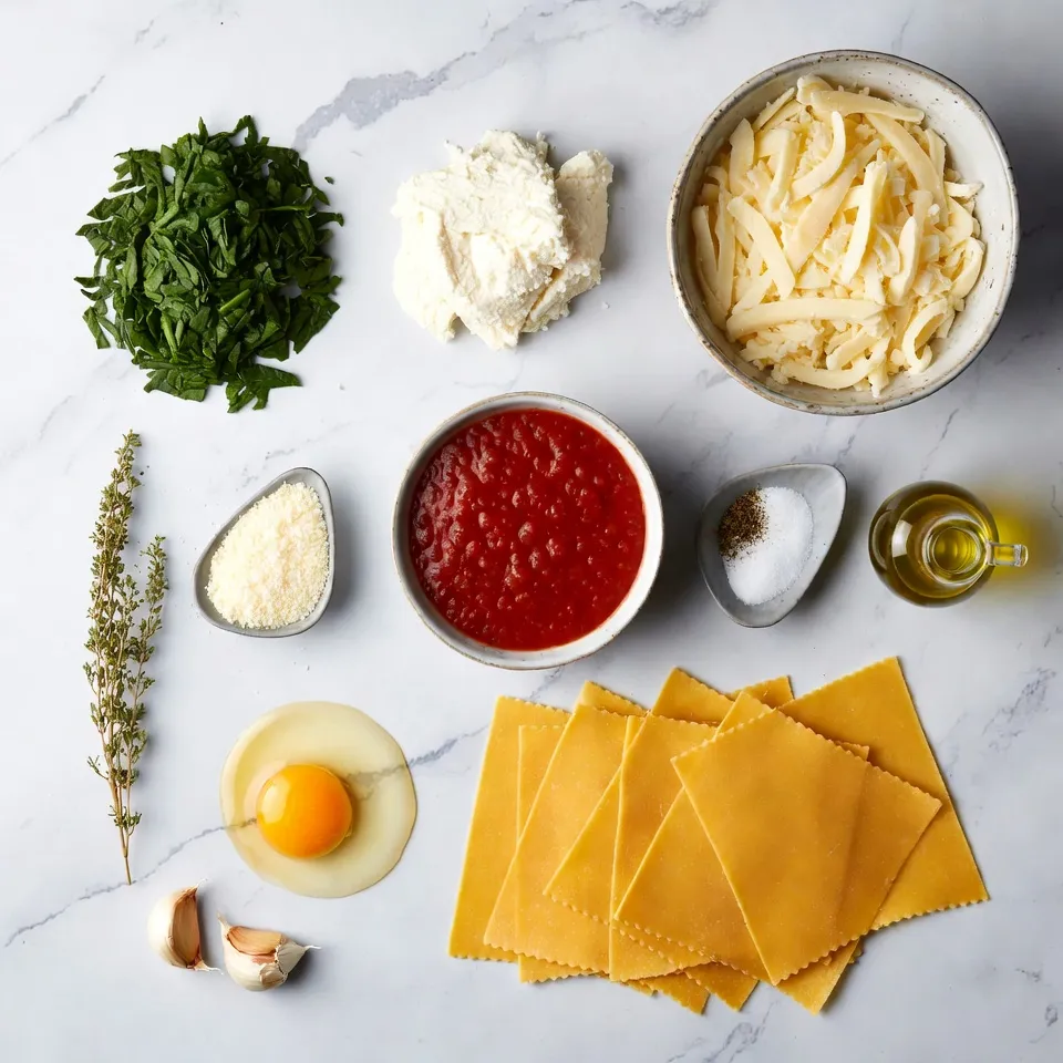 Main Ingredients for Creamy Spinach Ricotta Lasagna