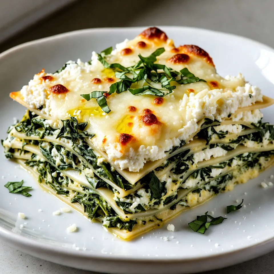 A delicious lasagna layered with creamy ricotta, fresh spinach, and a blend of cheeses.