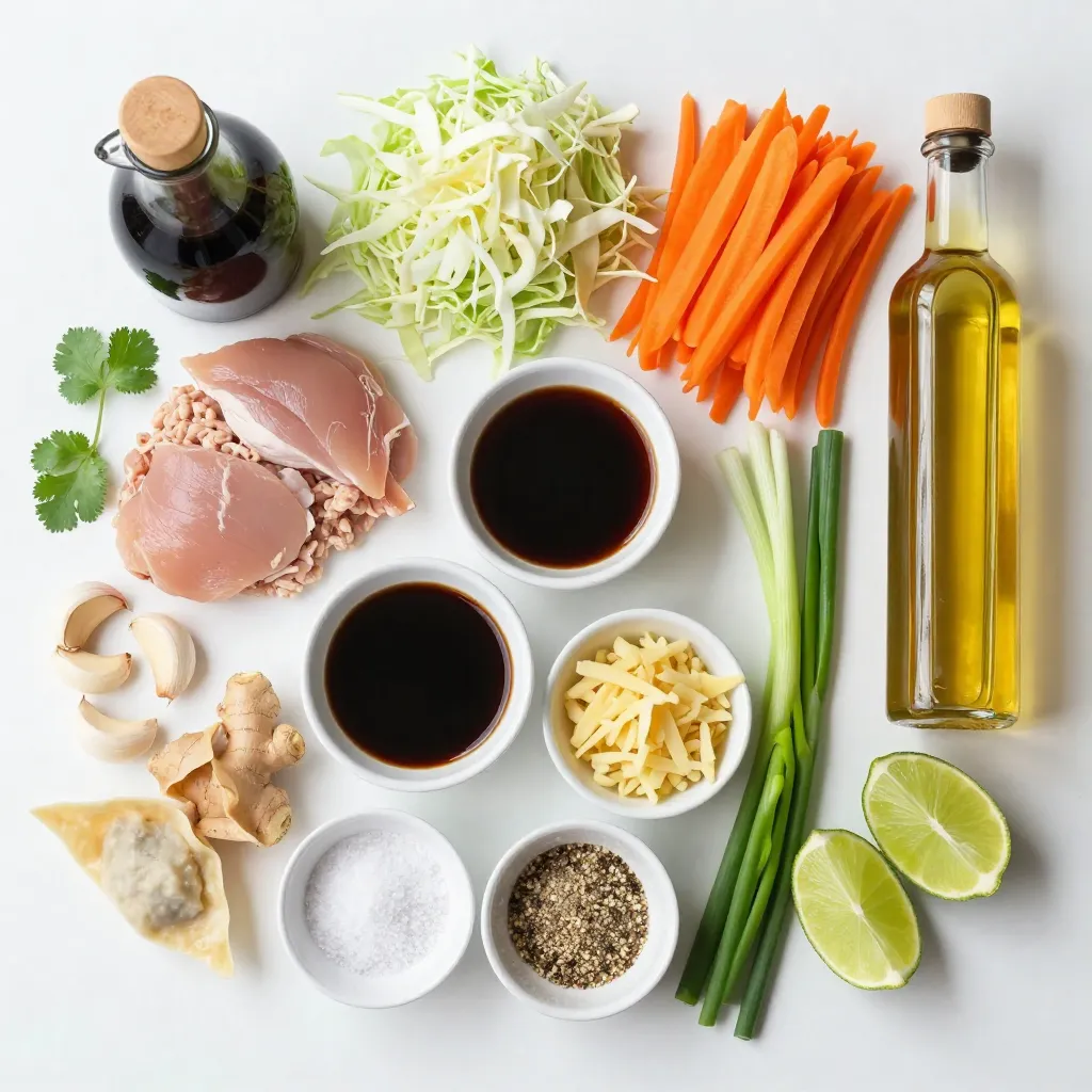 For flavor, soy sauce and sesame oil bring richness. Fresh ginger and garlic add a nice kick. Don’t forget to season with salt and pepper. When serving, fresh cilantro and lime wedges brighten the dish.