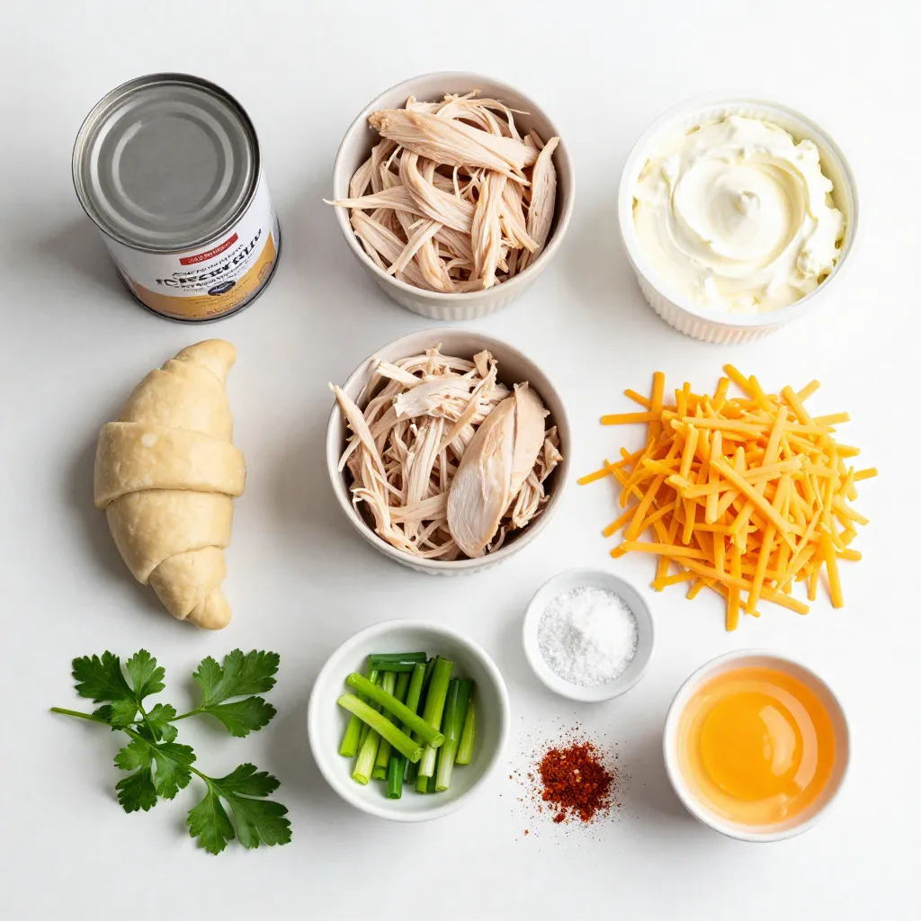 These main ingredients create the tasty filling and flaky dough. The cream cheese keeps the filling creamy and rich. The cheddar adds a sharp flavor that pairs well with chicken. Green onions give a fresh crunch. Garlic powder enhances the overall taste, making each bite delicious.
