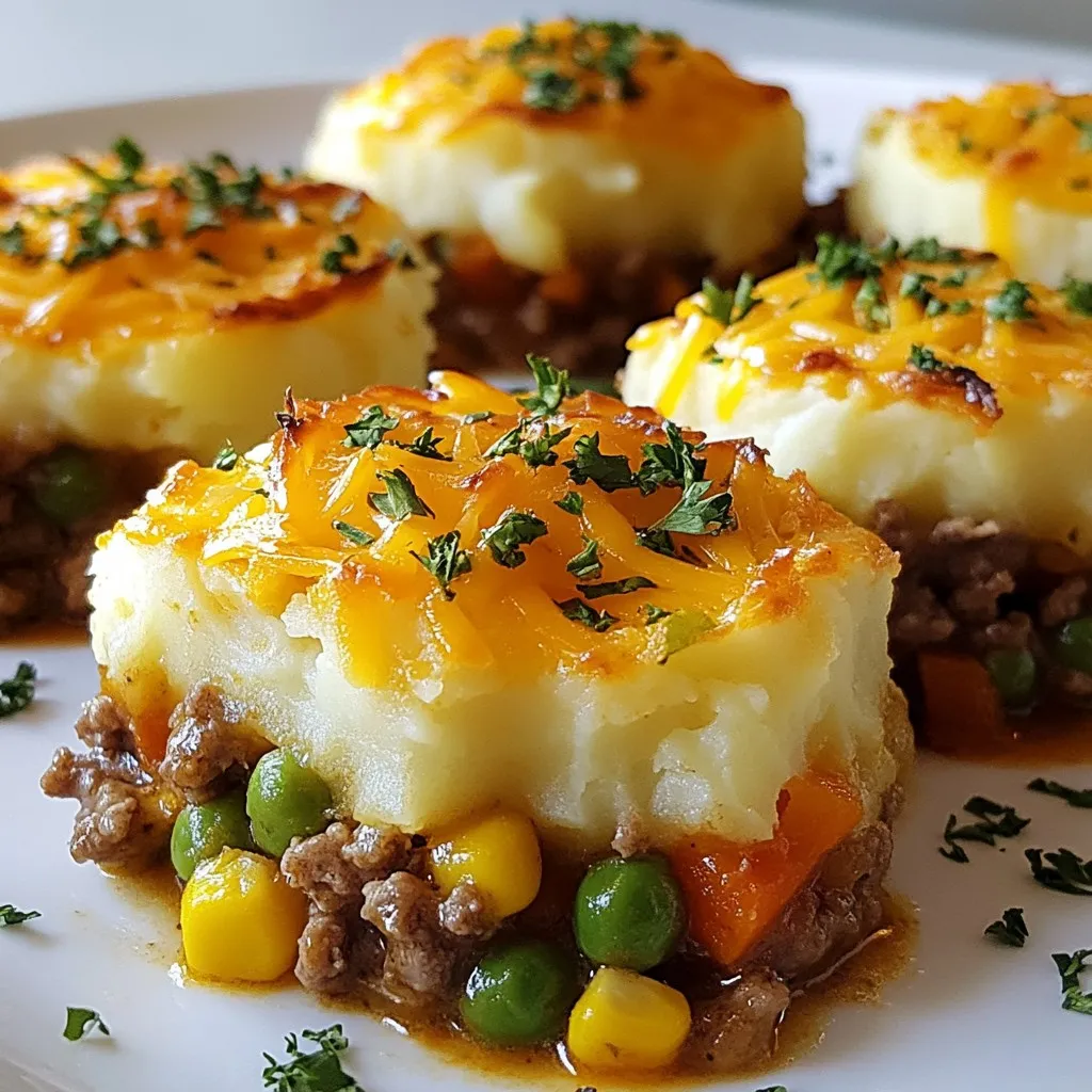 For a lovely presentation, serve the mini shepherd’s pies on a rustic wooden board. Add a sprinkle of fresh herbs like parsley or thyme on top. This adds color and freshness.