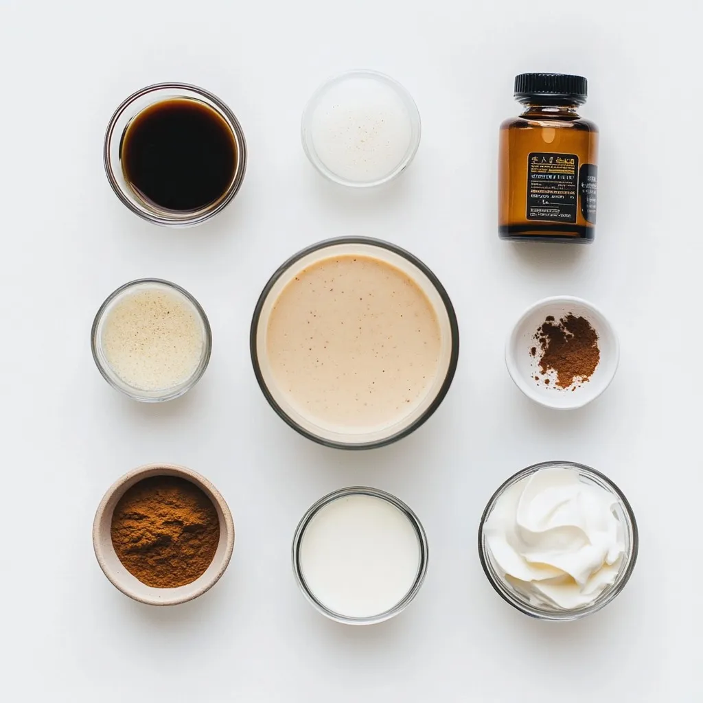 The main ingredients create a rich and creamy drink. The eggnog brings that festive flavor. The cooled coffee adds depth, and the milk makes it smooth. Granulated sugar sweetens the mix just right. Vanilla extract gives it a warm flavor. Nutmeg adds that cozy holiday spice. Finally, whipped cream makes it fun and indulgent.