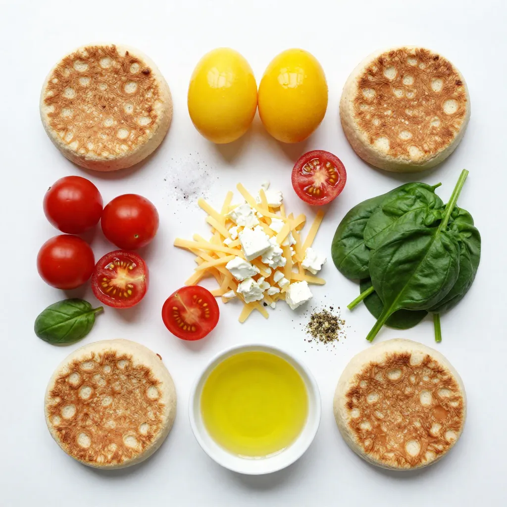 To make English muffin breakfast pizzas, you need whole wheat English muffins. They provide a hearty base. Next, eggs add protein and richness. Cherry tomatoes bring sweetness, while fresh spinach gives a nice crunch. Cheese adds creaminess and flavor, so choose your favorite type.