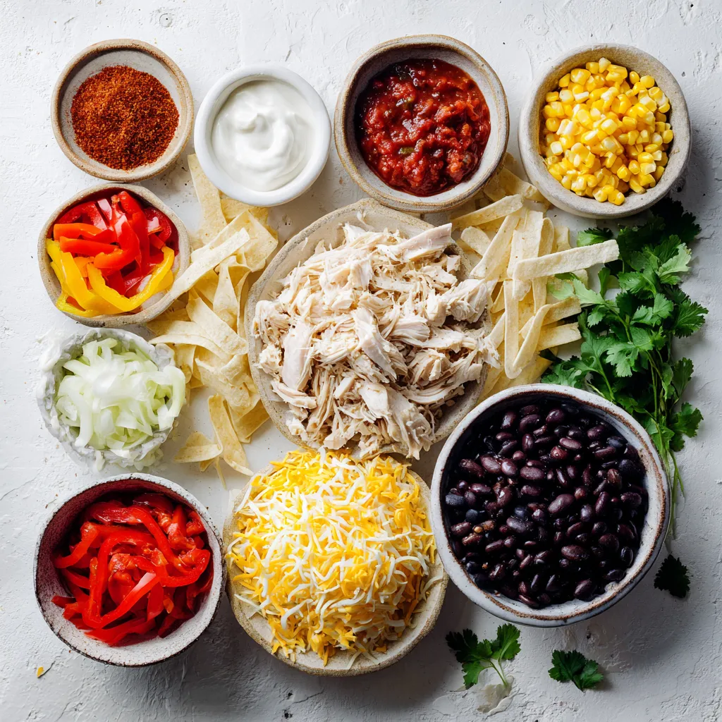 First, gather all your ingredients. You need cooked chicken, bell pepper, onion, corn, black beans, and salsa. Also, grab chili powder, cumin, cheddar cheese, sour cream, and flour tortillas. Start by slicing the bell pepper and onion thinly. If you use frozen corn, thaw it first. Rinse the black beans well to remove extra salt. This step makes sure all the flavors shine through.