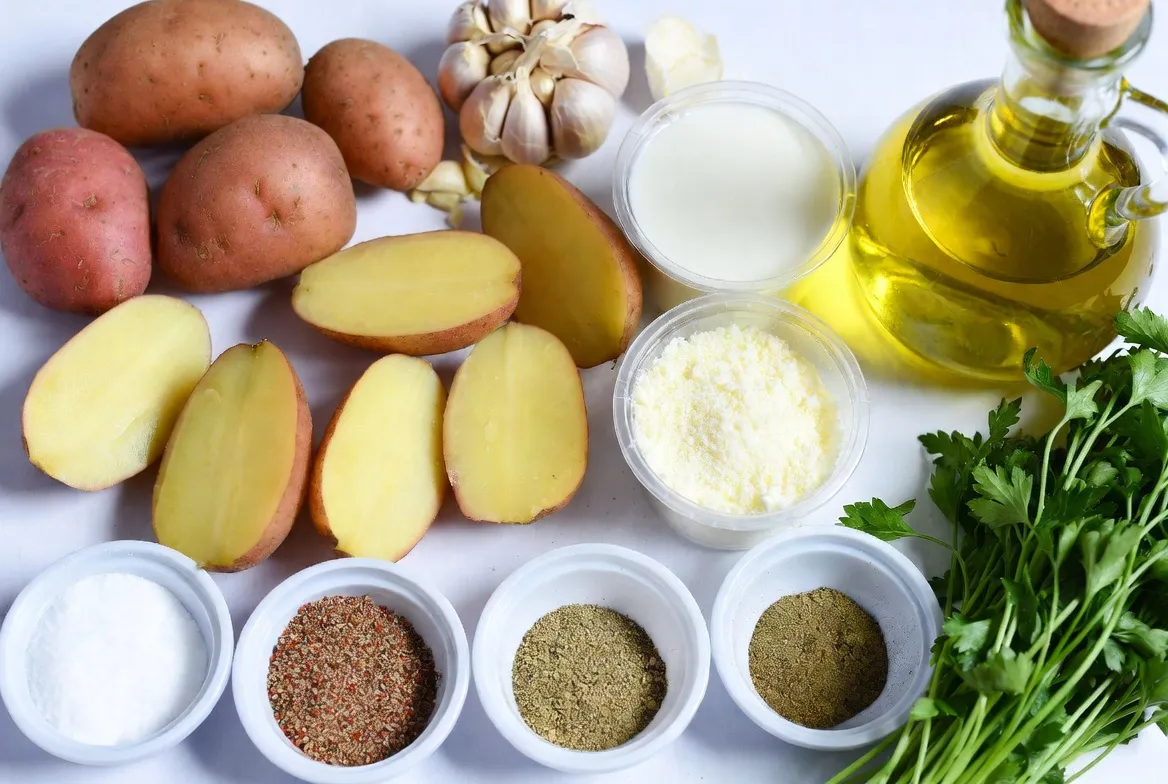 Main Ingredients for Garlic Parmesan Crockpot Chicken and Potatoes