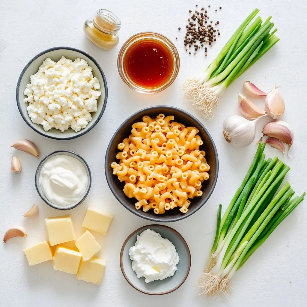 Main Ingredients for High-Protein Honey Garlic Butter Chicken Mac & Cheese