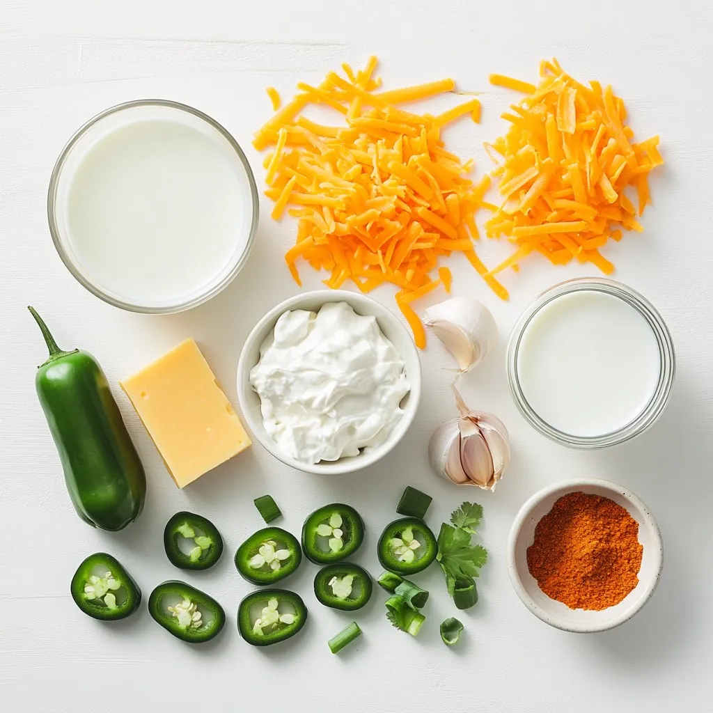 When choosing jalapeños, look for firm peppers with smooth skin. Bright green is best. For less heat, pick smaller jalapeños and remove the seeds. Use fresh onion and garlic for the best flavor. Choose a good-quality cream cheese and sharp cheddar. These will add to the creaminess and taste.