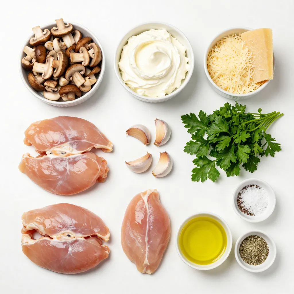 Each ingredient plays a role in making this dish delicious. The chicken is the star, while the mushrooms add a rich, earthy flavor. Cream cheese provides creaminess, and Parmesan adds a salty touch. Garlic and herbs bring in that fresh taste. Make sure you have all these items ready to create a meal everyone will love.