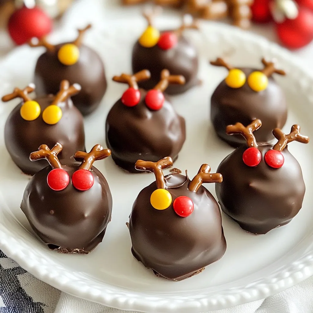 These reindeer treats look great on a festive platter. You can add sprinkles for extra flair. Try using green and red sprinkles to match the holiday theme. These treats are perfect for parties or as gifts. Just pack them in a cute box. They will brighten anyone’s day!