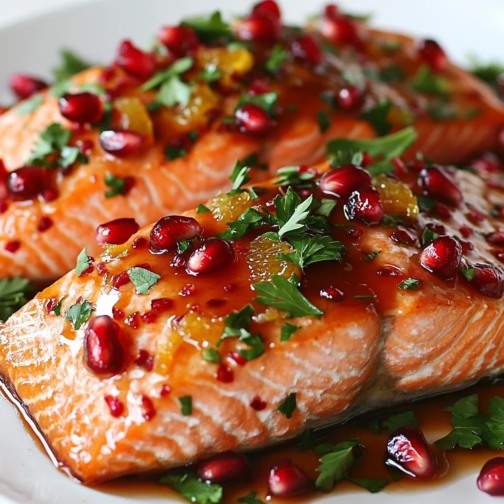 - Just before serving, sprinkle the salmon with pomegranate seeds for a burst of color and flavor. Add chopped fresh parsley on top for an extra touch of freshness, if desired. Serve immediately alongside your favorite sides.