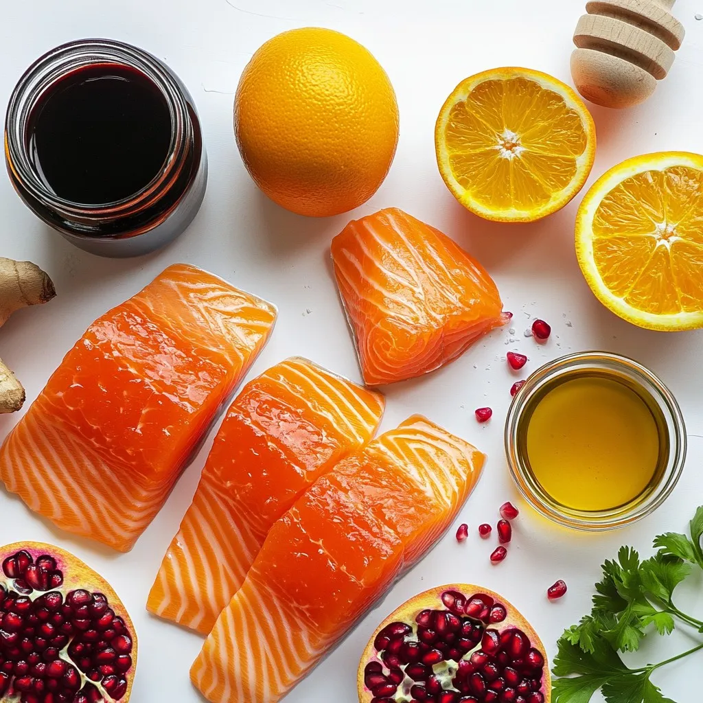 List of ingredients for Pomegranate Orange Glazed Salmon