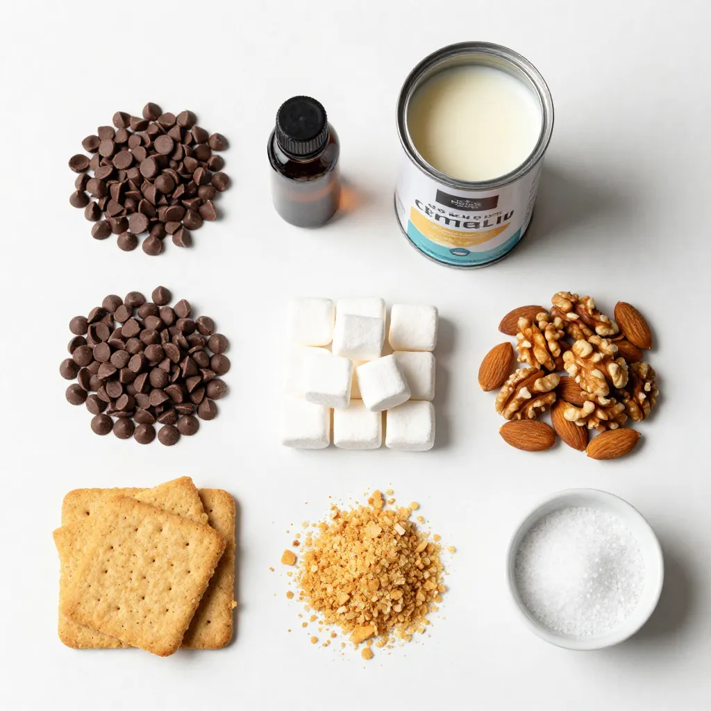 Each ingredient plays an important role in creating that delightful taste. The semi-sweet chocolate chips give a rich flavor. Sweetened condensed milk adds creaminess and sweetness. Vanilla extract enhances the overall taste with its warm notes. Mini marshmallows bring that classic Rocky Road texture. Chopped nuts add crunch, while crushed graham crackers give a nice base and additional flavor. The pinch of salt balances all the sweetness.