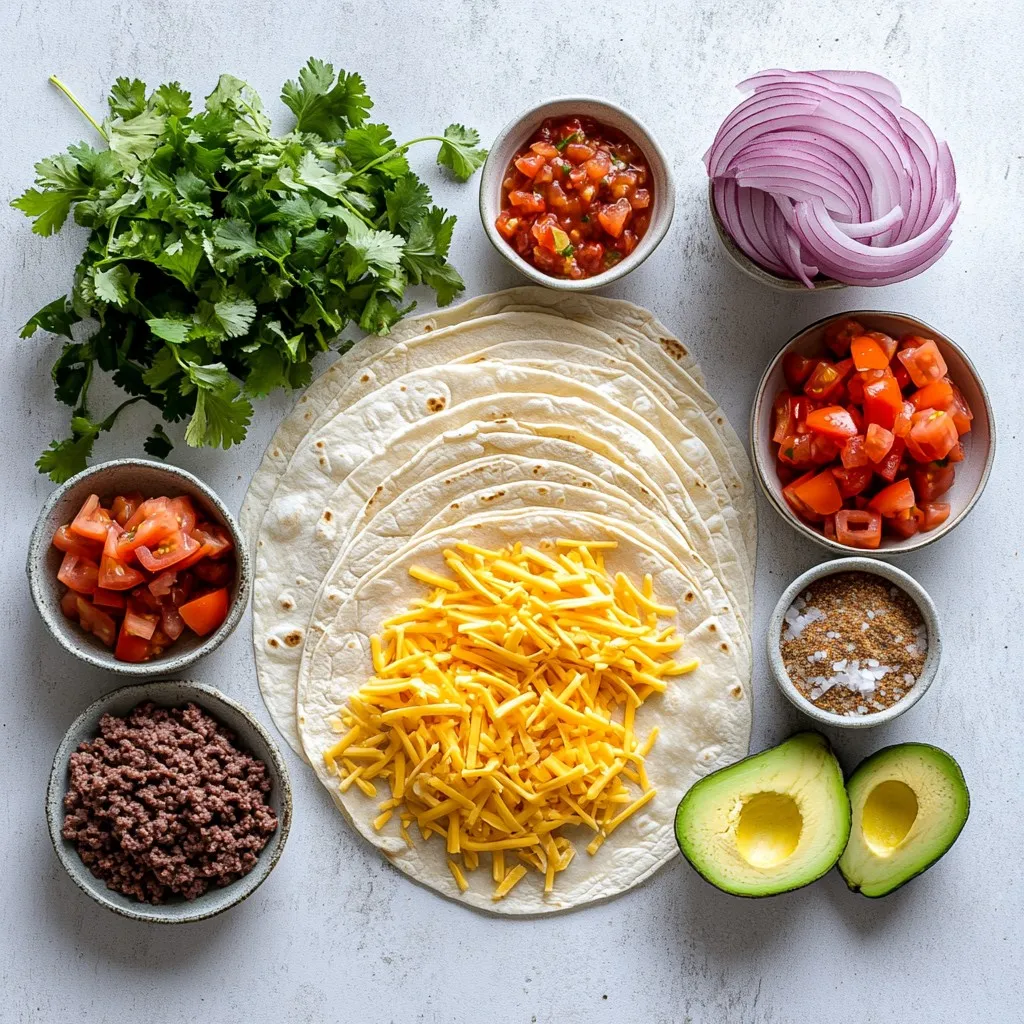 The main ingredients list is simple but full of flavor. The ground beef provides a juicy base. The tortillas hold everything together while adding crunch. Cheese brings gooey richness that you will love.