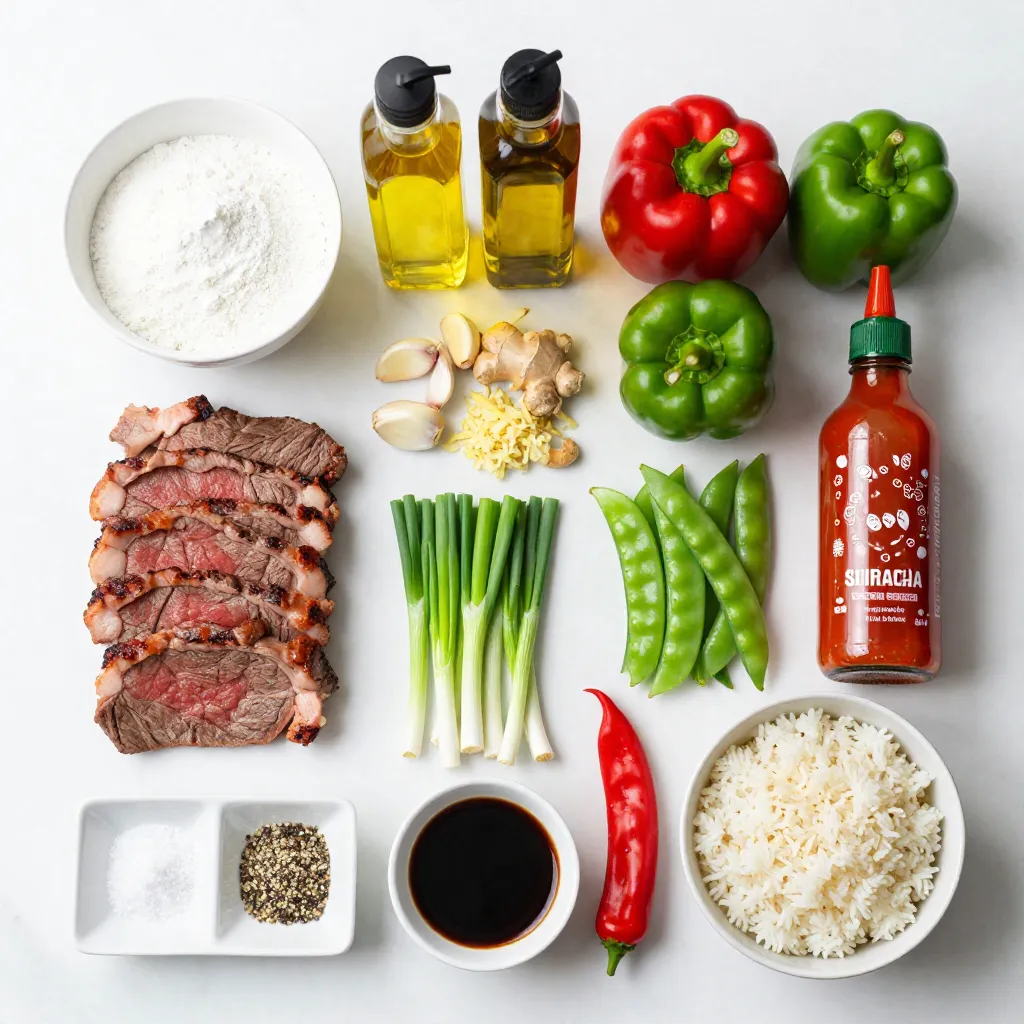 – 1 lb (450g) flank steak, thinly sliced against the grain