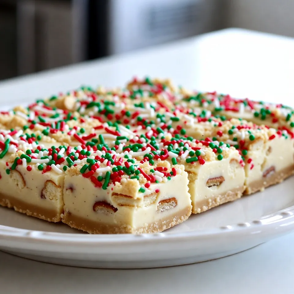 - 2 cups white chocolate chips - 1 can (14 oz) sweetened condensed milk - 1/4 cup unsalted butter - 1 cup crushed sugar cookies - 1/2 teaspoon vanilla extract - 1/4 teaspoon almond extract - 1/2 cup festive sprinkles You can swap white chocolate chips for milk or dark chocolate chips. If you want a non-dairy option, use coconut milk or almond milk in the fudge. For sprinkles, try using chocolate chips, nuts, or dried fruit. This will add a fun twist to your fudge. {{ingredient_image_2}} Start by lining a 9x9-inch baking pan with parchment paper. Make sure some paper hangs over the edges. This overhang helps when you lift the fudge out after it sets. It saves you from messy breaks. In a medium saucepan, combine 2 cups of white chocolate chips, 1 can of sweetened condensed milk, and 1/4 cup of unsalted butter. Set the pan over low heat. Stir constantly with a silicone spatula. This keeps the chocolate from burning. You want the mixture to be smooth and creamy. Once the mixture is smooth, remove the pan from the heat. Stir in 1/2 teaspoon of vanilla extract and 1/4 teaspoon of almond extract. This adds a lovely aroma. Next, gently fold in 1 cup of crushed sugar cookies. Make sure the cookies are evenly mixed in for consistent flavor. Carefully pour the fudge mixture into the prepared pan. Use your spatula to spread it evenly. Smooth the top for a nice finish. Now, sprinkle 1/2 cup of festive sprinkles on top. Press them down slightly so they stick. This festive touch makes the fudge extra special! Let the fudge cool at room temperature for about 1 hour. Then, transfer it to the fridge. Chill for at least 2 hours or until it feels firm. You can tell it’s ready when it holds its shape well. To make great fudge, you want even mixing. When you fold in the crushed sugar cookies, make sure they spread out well. This way, each bite tastes the same. You also need to avoid burning the chocolate. Keep the heat low and stir often. If you see any signs of burning, take it off the heat right away. For serving, think about how to make it pretty. Place the fudge squares on a nice platter. You can add little sugar cookies or festive decorations around the fudge. This gives it a cheerful look. Holiday-themed garnishes like mini ornaments or themed picks also work well. One big mistake is overheating the ingredients. If you let the chocolate get too hot, it can burn. Always use low heat and stir. Another mistake is not letting the fudge cool long enough. After mixing, it should sit at room temperature for one hour. Then, chill it in the fridge for at least two hours. This ensures it firms up nicely. Pro Tips Use High-Quality Chocolate: Opt for premium white chocolate chips for a creamier and richer fudge texture. Let It Cool Completely: Ensure the fudge cools at room temperature before refrigerating to prevent condensation, which can make it sticky. Experiment with Flavors: Feel free to add a pinch of cinnamon or nutmeg for a warm holiday spice twist to your fudge. Storage Tips: Keep the fudge in an airtight container in the fridge for up to two weeks to maintain freshness. {{image_4}} You can easily switch up the flavor of your sugar cookie Christmas fudge. Try adding different extracts. For a minty twist, peppermint extract works great. Just swap it in for the almond extract. This gives your fudge a refreshing taste. You can also mix in nuts, like walnuts or pecans, for added crunch. If you want something more chocolatey, add cocoa powder. This makes the fudge richer and deeper in flavor. All of these options let you create a fudge that suits your taste buds. If you need gluten-free options, use gluten-free cookies. Just crush them the same way as regular sugar cookies. This keeps the taste and texture you love. For vegan-friendly substitutions, use dairy-free chocolate chips. You can replace sweetened condensed milk with a coconut milk version. These changes keep your fudge tasty while meeting dietary needs. Your fudge can fit any holiday theme. For Valentine's Day, use red and pink sprinkles. It adds a sweet touch to your treats. For Easter, you can swap in pastel colors for the sprinkles. This makes your fudge look fun and festive. You can also create color-themed fudge for parties. Match the colors to your event for a special touch. Your fudge will stand out and bring joy to any celebration. Store your fudge in proper airtight containers. This keeps it fresh longer. Choose containers that fit snugly, keeping air out. Avoid letting your fudge sit in warm or humid places. Heat and moisture can ruin its texture and taste. At room temperature, the fudge lasts about one week. If you store it in the fridge, it can last up to two weeks. You can also freeze the fudge for up to three months. Just wrap it tightly in plastic wrap and place it in a freezer-safe container. If your fudge becomes too hard, soften it by letting it sit at room temperature. You can also microwave it briefly. If you freeze your fudge, let it cool for a bit before serving. This helps improve the texture and flavor before you enjoy it. Sugar cookie fudge is a sweet treat that blends fudge and sugar cookies. It has a creamy texture and a rich flavor. The main ingredients are white chocolate, sweetened condensed milk, and crushed sugar cookies. This fudge captures all the joy of sugar cookies in a bite-sized square. Yes, you can make this fudge ahead of time. It keeps well in the fridge for up to two weeks. Prepare it a few days before your holiday event. This way, you save time and enjoy stress-free baking. The fudge is ready to cut after it chills in the fridge for at least two hours. You should see it looks firm and set. When you press lightly, it should hold its shape. Absolutely! Sugar cookie fudge makes a great gift. Package it in a festive box or tin. Add a ribbon for a lovely touch. Friends and family will appreciate this homemade treat. You can use milk chocolate, but it will change the flavor. The fudge will taste sweeter and les