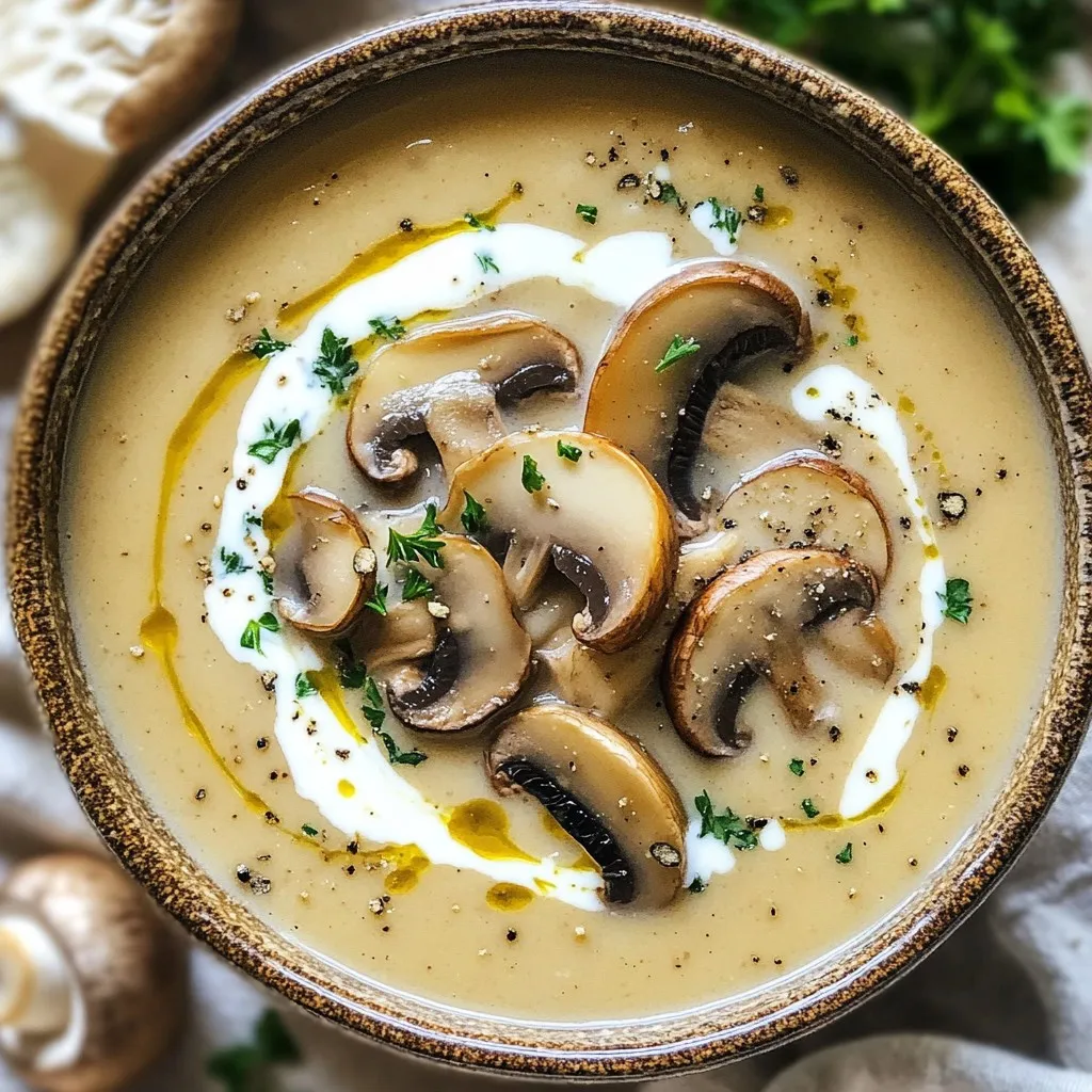 Serve your soup in warm bowls for a cozy touch. A drizzle of cream on top looks great and adds flavor. For a fancy look, sauté some whole mushrooms and place them on top. Garnish with fresh parsley for color. Pair your soup with crusty bread or a fresh salad. Both add great texture and balance the meal. Enjoying this soup with loved ones makes it even better!